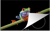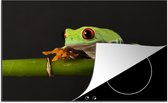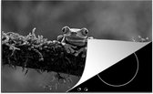 KitchenYeah® Inductie beschermer 80.2x52.2 cm - Roodoogmakikikker op bamboe - zwart wit - Kookplaataccessoires - Afdekplaat voor kookplaat - Inductiebeschermer - Inductiemat - Inductieplaat mat