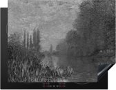 Inductie mat - The Japanese Bridge at Giverny - schilderij van Claude Monet in zwart/wit. - Inductie afdekplaat - Keuken