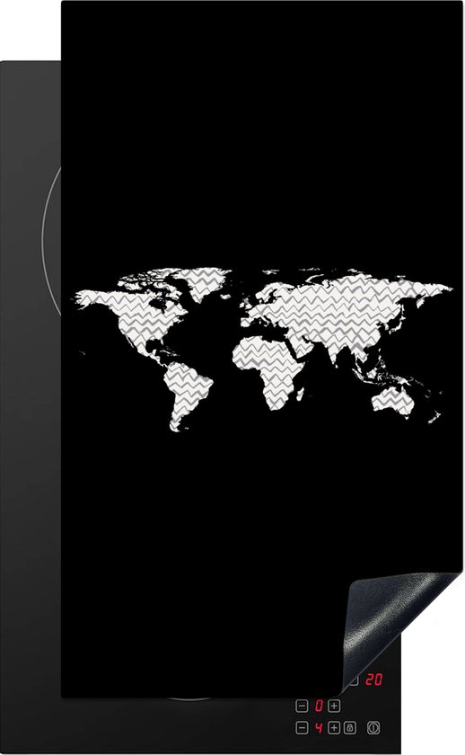 KitchenYeah® Inductie beschermer 30x52 cm - Wereldkaart - Patronen - Zwart - Kookplaataccessoires - Afdekplaat voor kookplaat - Inductiebeschermer - Inductiemat - Inductieplaat mat
