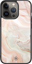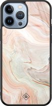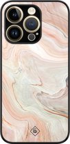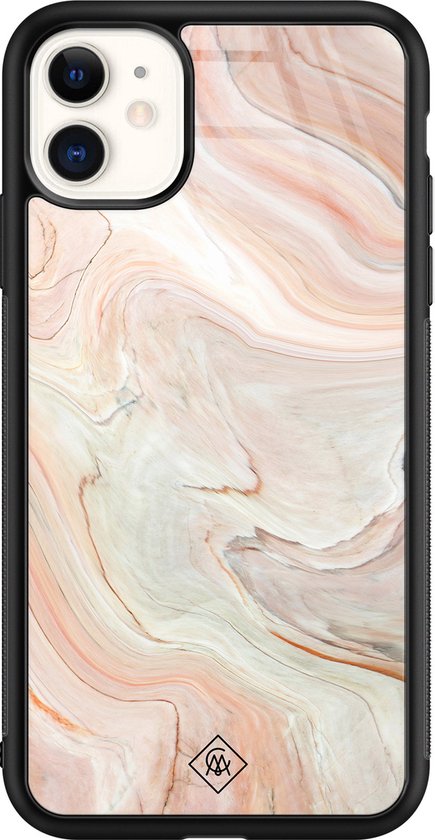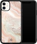 Casimoda® hoesje - Geschikt voor iPhone 11 - Marmer Waves - Luxe Hard Case Zwart - Backcover telefoonhoesje - Bruin/beige