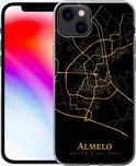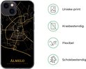 Telefoonhoesje Geschikt voor iPhone 13 hoesje - Almelo - Kaart - Goud - Zwart - Siliconen Telefoonhoesje Telefoonhoesje