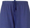 Irresistible Dames Pyjama gemaakt van 100% gekamde katoen. Deze pyjama heeft een comfortabele jersey top in uni kobaltblauw met een trendy tekstprint en een zachte lange broek met streepdessin. Ronde hals top met een meerkleurig rekbaar rib boordje. Lange mouwen met boorden. De lange broek heeft een subtiel streeppatroon met bijpassende rib boorden aan de taille en enkels.