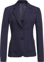 64% polyester / 34% viscose / 2% elasthan. LYCRA® elasthan. Getailleerde pasvorm, kraagloze styling met gebogen splitten, 2 interne jettzakken, gebogen voor- en achternaden. Hoge mate van vlekbestendigheid Teflon®. Martindale-slijtproef: bestand tegen 10.000 wrijvingen. Wasbaar in de machine op 40 °C of droogkuis.