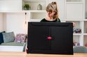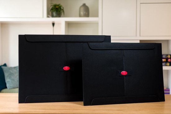 Met deze Jumbo Portapuzzle Standaard wordt het zeer eenvoudig om puzzels op te bergen en te vervoeren. Tijdens het puzzelen leg je de puzzel in het middendeel van de Portapuzzle en op de zijpanelen en losse panelen kan je de stukjes sorteren. Als je klaar bent met puzzelen plaats je de losse panelen over de puzzel, haal je de stukjes uit het zijpaneel en klap je vervolgens de zijpanelen over het middendeel heen. Sluit het middelste klittenband en daarna het klittenband boven- en onderaan het bord. Zo kun je verder puzzelen wanneer het jou uitkomt! De puzzelaccessoire is geschikt voor het opbergen van puzzels van 500 tot 1500 stukjes en de afmetingen zijn 94 x 68 cm. De maximale afmeting van een puzzel die op deze mat past is 90x60 cm.
