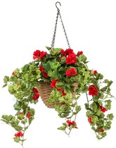 Emerald - Kunstplant Geranium in hangmand UV rood 45cm - Kunstplant voor binnen
