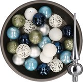 - 1x Bellatio Decorations kerstballen - 37x st - donkerblauw - 6 cm - kunststof