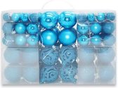 Set van 74x stuks onbreekbare kerstballen in een mix van donkerblauw en mahonie bruin. Wij adviseren u om kerstbalhaakjes mee te bestellen (niet inbegrepen).
