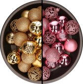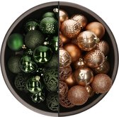 Kerstballen - 74x stuks - donkergroen en lichtbruin - 6 cm - kunststof