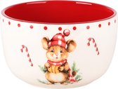Prachtige kerstmuis in bordeaux. 14x12xH32 cm.