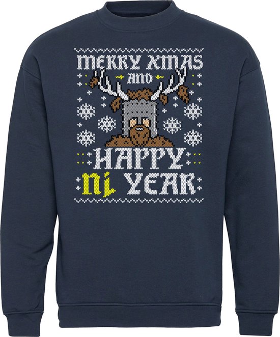 Kersttrui Happy Ni Year | Foute Kersttrui Dames Heren | Kerstcadeau volwassenen | Kerst | Navy | maat S