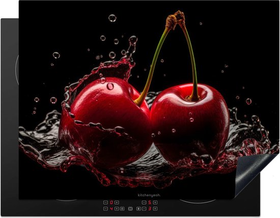 KitchenYeah® Inductie beschermer 80x55 cm - Kersen - Fruit - Water - Kookplaataccessoires - Afdekplaat voor kookplaat - Inductieplaat mat - Afdekmat voor inductiekookplaat - Keuken decoratie