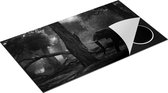 Chefcare Inductie Beschermer Twee Getekende Olifanten - Abstract - Zwart Wit - 91,2x52 cm - Afdekplaat Inductie - Kookplaat Beschermer - Inductie Mat