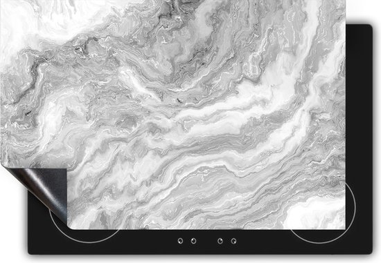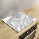 Chefcare Inductie Beschermer Witte Marmer - Abstracte Kunst - Zwart Wit - 65x52 cm - Afdekplaat Inductie - Kookplaat Beschermer - Inductie Mat