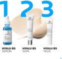 De Hyalu B5 oogcrème van La Roche-Posay is een anti-rimpel dermocosmetische verzorging voor de oogcontouren. Deze oogcrème herstelt de gevoelige huid rond de ogen en geeft volume door de werking van een duo van hyaluronzuren en vitamine B5. Gefragmenteerd hyaluronzuur en hyaluronzuur met een hoog moleculair gewicht werken in synergie om de huid zowel aan het oppervlak als intens te vullen. Verder heeft Vitamine B5 een kalmerende en herstellende werking. Rimpels verminderen, de huid rondom de ogen toont meer elasticiteit en volume. Daarnaast wordt ook de huidbarrière hersteld. De parfumvrije formule is uiterst geschikt voor een gevoelige huid rondom de ogen. De lichtreflecterende pigmenten lichten de vermoeide, doffe huid rondom de ogen op. De textuur van de Hyalu B5 oogcrème is comfortabel en trekt snel in.