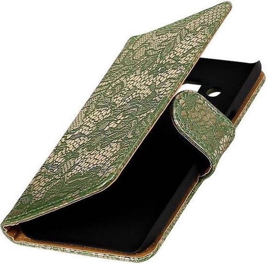 Lace Bookstyle Wallet Case Hoesjes Geschikt voor Samsung Galaxy J7 (2017) J730F Donker Groen