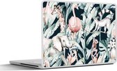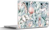 Laptop sticker - 13.3 inch - Aquarelverf - Dieren - Olifant - Flamingo - Jongens - Blauw - Kinderen - Kids - 31x22,5cm - Laptopstickers - Laptop skin - Cover
