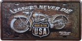 Legends Never Die Motor Reclamebord van metaal METALEN-WANDBORD - MUURPLAAT - VINTAGE - RETRO - HORECA- BORD-WANDDECORATIE -TEKSTBORD - DECORATIEBORD - RECLAMEPLAAT - WANDPLAAT - NOSTALGIE -CAFE- BAR -MANCAVE- KROEG- MAN CAVE