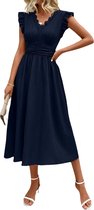 Livano Zomerjurk Dames - Zomerjurken - Volwassen - Jurk - Ibiza Stijl - Sundress - Blauw/Wit - Maat XL