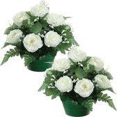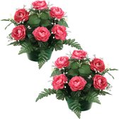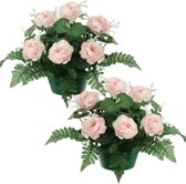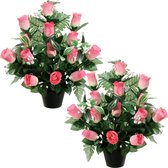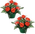 Louis Maes Kunstbloemen plantje in pot - 2x - rood - 25 cm - Bloemstuk ornament - rozen met bladgroen