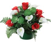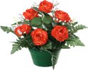 2x stuks kunstbloemen kunstplantje rozen in pot in de kleuren rood met een hoogte van ongeveer 25 cm. Combinatie van rood met bladgroen. Bloemenstuk tafel ornament. Zeer realistisch uitziende, onderhoudsvrije plant met bloemen. Materiaal: pvc/polyester. Woondecoraties voor in huis. Enkel nog even in een mooie bloempot plaatsen en genieten. Ook perfect te gebruiken als grafstuk/grafornament.