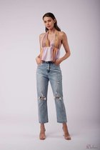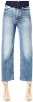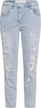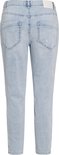 Lichtblauwe jeans van Marc Aurel. Deze destroyed broek is gemaakt van een denim stretch stof, heeft een normale taille en cropped broekspijpen. De jeans heeft een relaxte losse fit pasvorm en heeft aan de zijkanten een witte bies met dunne donkerblauwe strepen.