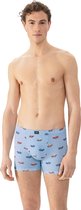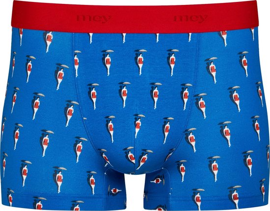 Een leuke helder blauwe aansluitende boxer met dames met paraplu. De boxer is gemaakt van 94% biologische katoen en heeft vlak afgewerkte naden en een opgezette geweven rode tailleboord. Ervaar het bijzondere natuurlijke draagcomfort van deze Mey RE-THINK boxer.