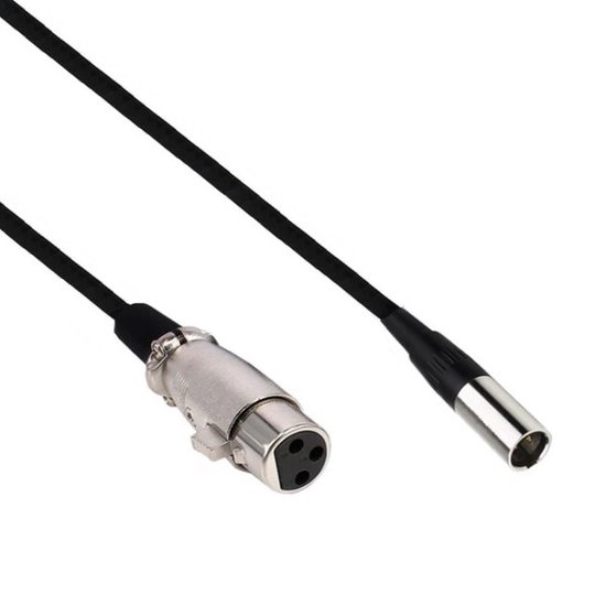 Mini XLR (m) - XLR (v) audiokabelAudiokabel waarmee u een apparaat of accessoire met Mini XLR ingang, bijvoorbeeld een microfoon-ingang, kunt verbinden met een accessoire, bijvoorbeeld een microfoon, met XLR connector. XLRXLR connectoren worden veel gebruikt bij professionele audio apparatuur. Door de vergrendeling van de plug is het een stabiele verbinding, perfect voor luidsprekers, mengpanelen etc. De XLR connector is medio vorige eeuw voor het eerst door het merk Cannon uitgebracht. Om deze reden wordt de XLR connector ook wel Cannon plug genoemd. Mini XLR 3-pinsDe 3-pins Mini XLR wordt ook wel TA3 connector genoemd. De kleinere Mini 3-pins XLR connector wordt o.a. gebruikt bij compacte audio items, zoals bijvoorbeeld UHF draadloze microfoon bodypacks, studio en veld opname hoofdtelefoons (o.a. Audio Technica) en andere portable accessoires.