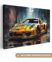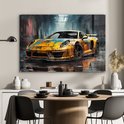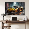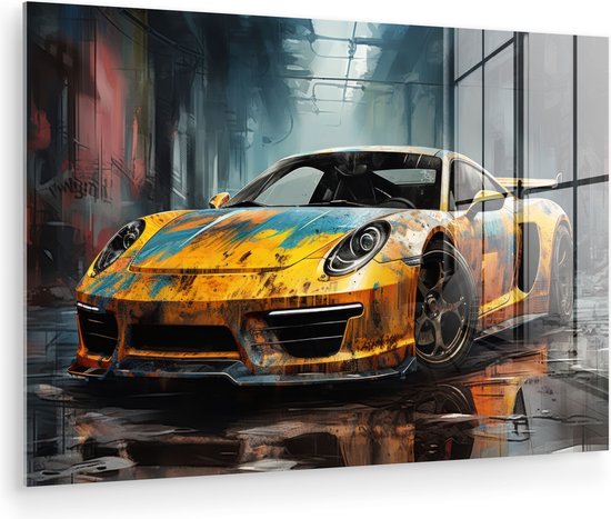 Glasschilderij - Auto - Geel - Verf - Abstract - Woonkamer - Slaapkamer