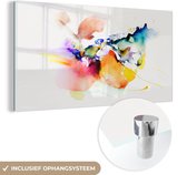MuchoWow® Glasschilderij 80x40 cm - Schilderij acrylglas - Aquarel - Abstract - Kunst - Foto op glas - Muurdecoratie woonkamer - Wanddecoratie slaapkamer - Schilderijen