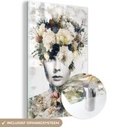 MuchoWow® Glasschilderij 60x90 cm - Schilderij acrylglas - Bladeren - Vrouw - Bloemen - Foto op glas - Schilderijen