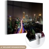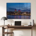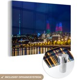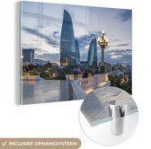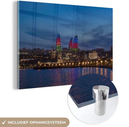 MuchoWow® Glasschilderij 90x60 cm - Schilderij acrylglas - Gekleurde Flame Towers in Azerbeidzjan - Foto op glas - Schilderijen