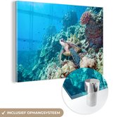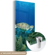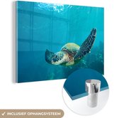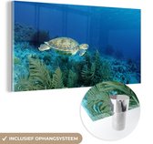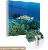 Glasschilderij - Groene zeeschildpad op Bonaire - Woonkamer - Slaapkamer