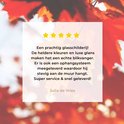 Het schilderij is gemaakt van kwalitatief hoogwaardig acrylaat glas met een totale dikte van 5 mm. Daarnaast is het voorzien van een uitmuntend afwerkingsniveau en het is volledig bestand tegen UV-straling, zodat de kleuren niet vervagen en je jarenlang plezier kunt beleven aan het glasschilderij.