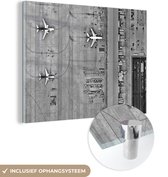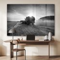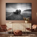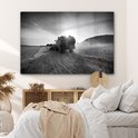 Glasschilderij - Landbouwmachine op een maïsveld - zwart wit - Woonkamer - Slaapkamer
