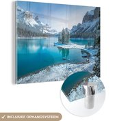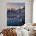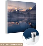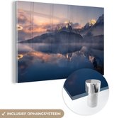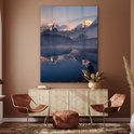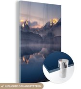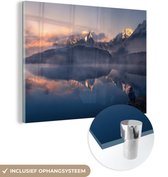 Glasschilderij - Landschap - Water - Berg - Sneeuw - Zonsondergang - Woonkamer - Slaapkamer
