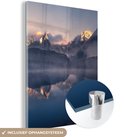 MuchoWow® Glasschilderij 120x160 cm - Schilderij acrylglas - Landschap - Water - Berg - Sneeuw - Zonsondergang - Foto op glas - Schilderijen
