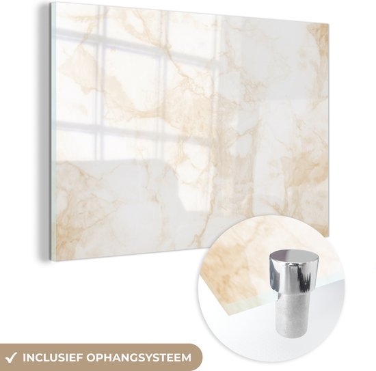 MuchoWow® Glasschilderij 90x60 cm - Schilderij acrylglas - Marmer - Wit - Goud - Luxe - Foto op glas - Schilderijen