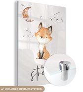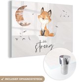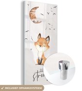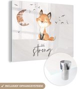 Glasschilderij - Quotes - Waterverf - Be strong - Kinderen - Vos - Dieren - Woonkamer - Slaapkamer
