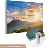 Glasschilderij - Schapen - Berg - Alpen - Woonkamer - Slaapkamer