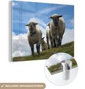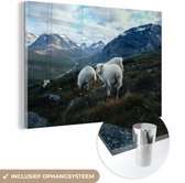 MuchoWow® Glasschilderij 40x30 cm - Schilderij acrylglas - Schapen - Berg - Alpen - Foto op glas - Schilderijen