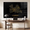 Glasschilderij - Utrecht - Nederland - Kaart - Gold - Woonkamer - Slaapkamer