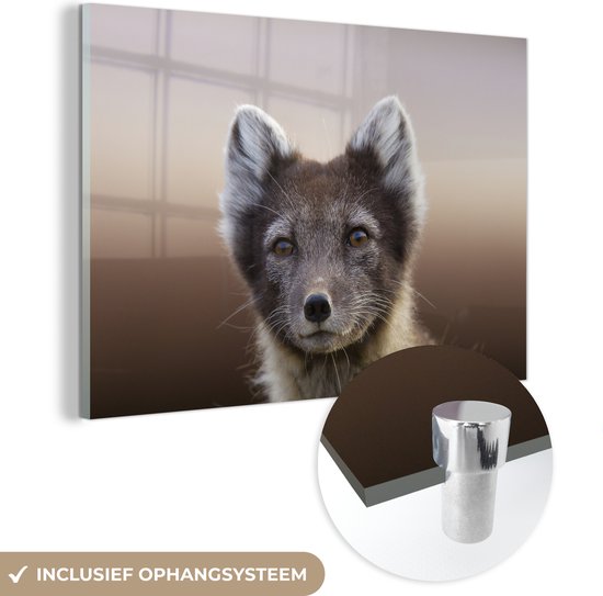 MuchoWow® Glasschilderij 30x20 cm - Schilderij acrylglas - Vos - Welp - Vacht - Foto op glas - Schilderijen