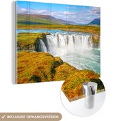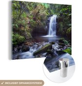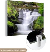 MuchoWow® Glasschilderij 160x120 cm - Schilderij acrylglas - Waterval - Water - Rotsen - Foto op glas - Schilderijen