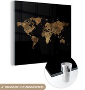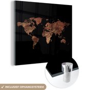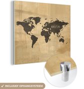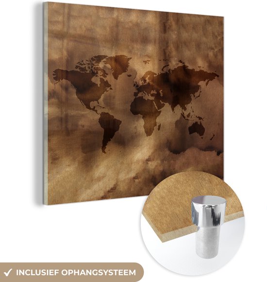 MuchoWow® Glasschilderij 50x50 cm - Schilderij acrylglas - Wereldkaart - Retro - Bruin - Foto op glas - Schilderijen