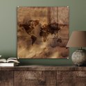 Glasschilderij - Wereldkaart - Retro - Bruin - Woonkamer - Slaapkamer
