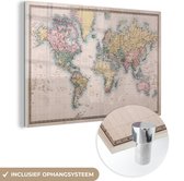 MuchoWow® Glasschilderij 40x30 cm - Schilderij acrylglas - Wereldkaart - Retro - Bruin - Foto op glas - Schilderijen