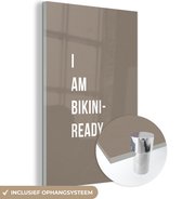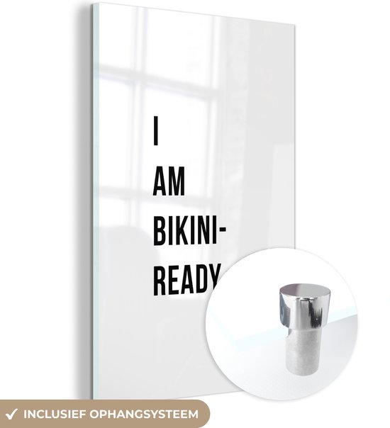 MuchoWow® Glasschilderij 20x30 cm - Schilderij acrylglas - Wit - Quote - I am bikini ready - Foto op glas - Schilderijen
