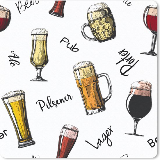 Muismat 30x30 cm - Mousepad Bier - Glazen - Patroon - Muismatten
