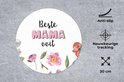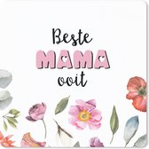 Over de fotoprintMoederdag quote: 'Beste mama ooit' omringd door bloemen..