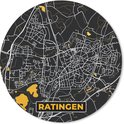 Muismat rond 20x20 cm - Mousepad Duitsland – Black and Gold – Ratingen – Stadskaart – Kaart – Plattegrond - Ronde muismatten - Stadskaart